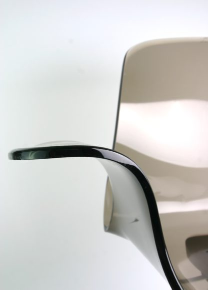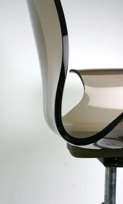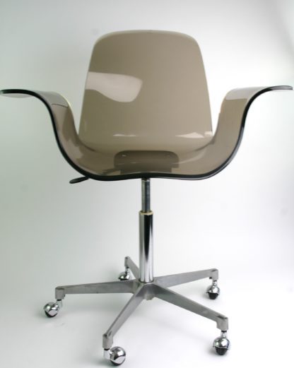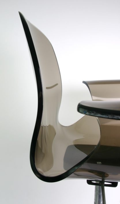 This beautiful smoked plastic swivel chair was probably designed by Paolo Tilche for his company Arform. It is the only piece we know of so it is quite possible that it is a prototype chair.